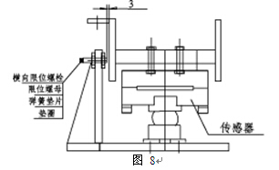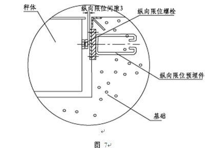 在秤臺(tái)的端蓋位置,按圖7的限位示意,調(diào)整限位螺栓頭部與預(yù)埋件側(cè)面間隙保持在3mm之內(nèi),然后鎖緊螺母。