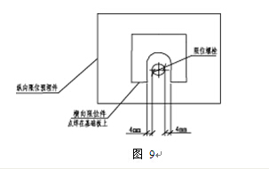 模式2:打開(kāi)秤臺(tái)端蓋,按圖11的限位示意,將U型橫向限位件焊接在預(yù)埋件上,并使限位螺栓頭部與U型件側(cè)面間隙保持在4mm之內(nèi),然后鎖緊螺母。